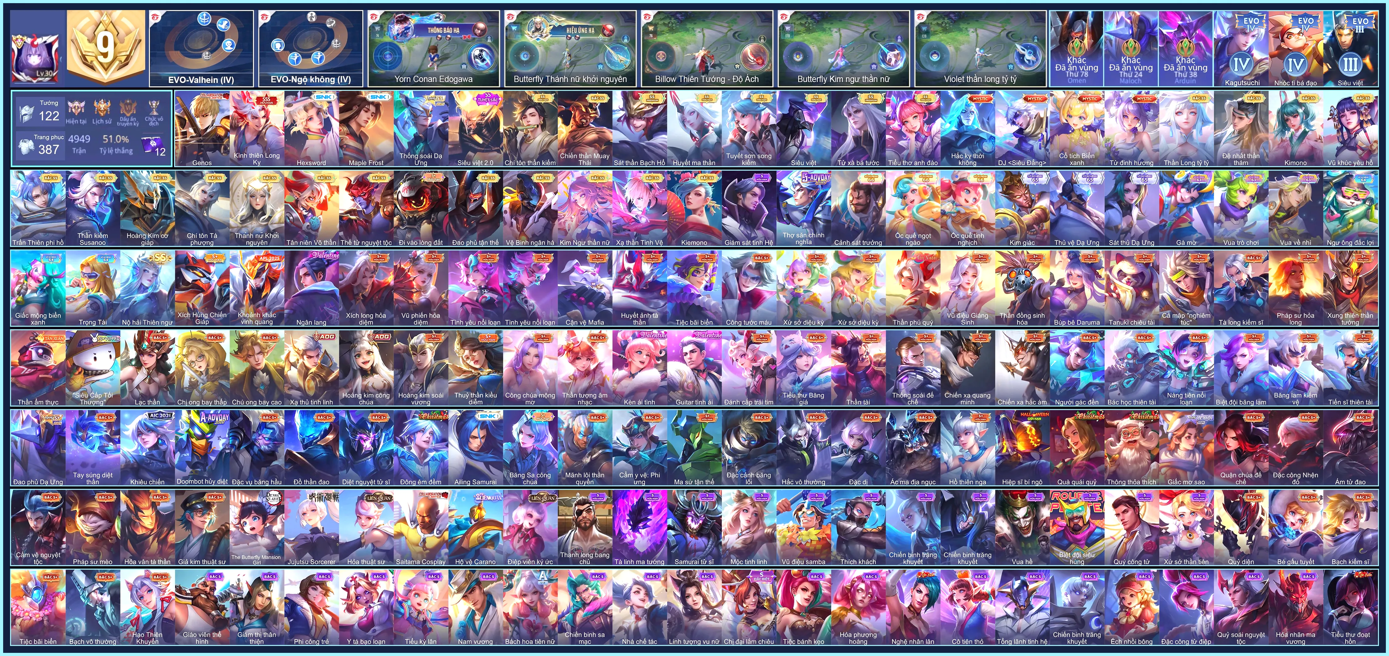Loại acc | MUA ACC LIÊN QUÂN VIP: SKIN SSS, ANIME, CỤC VÀNG, MÁC THÁCH ĐẤU |