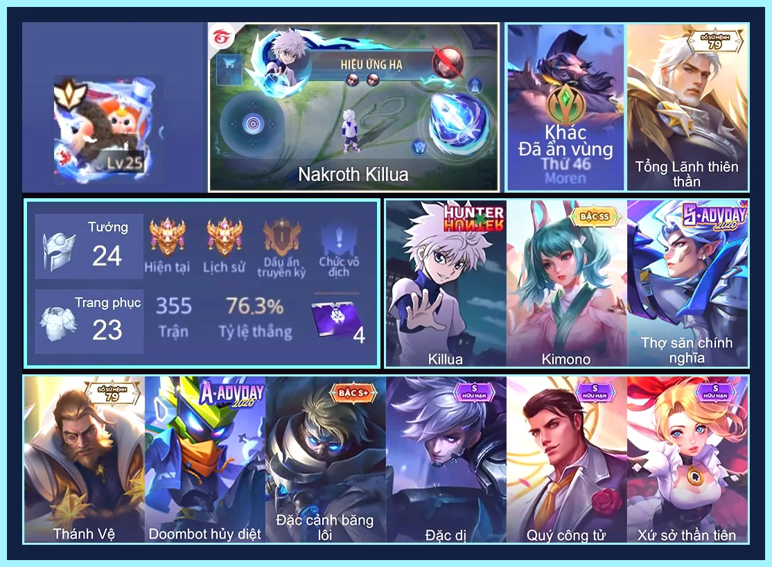 Acc #68554: Nakroth Killua,Capheny Kimono... CHỈ CÀI SĐT, giá 1,970,000 đ