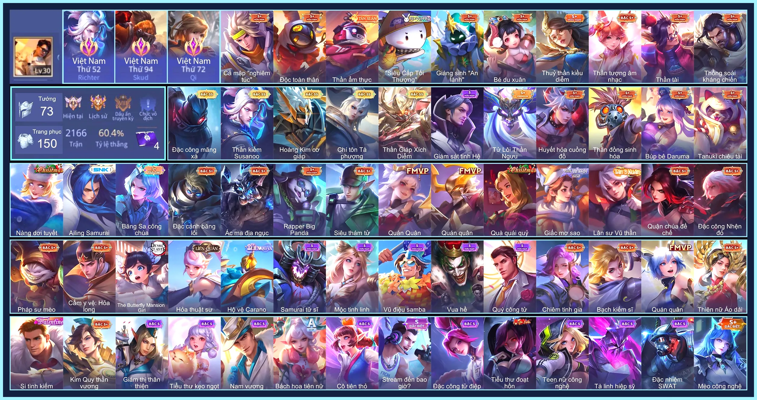 Loại acc | MUA ACC LIÊN QUÂN VIP: SKIN SSS, ANIME, CỤC VÀNG, MÁC THÁCH ĐẤU |