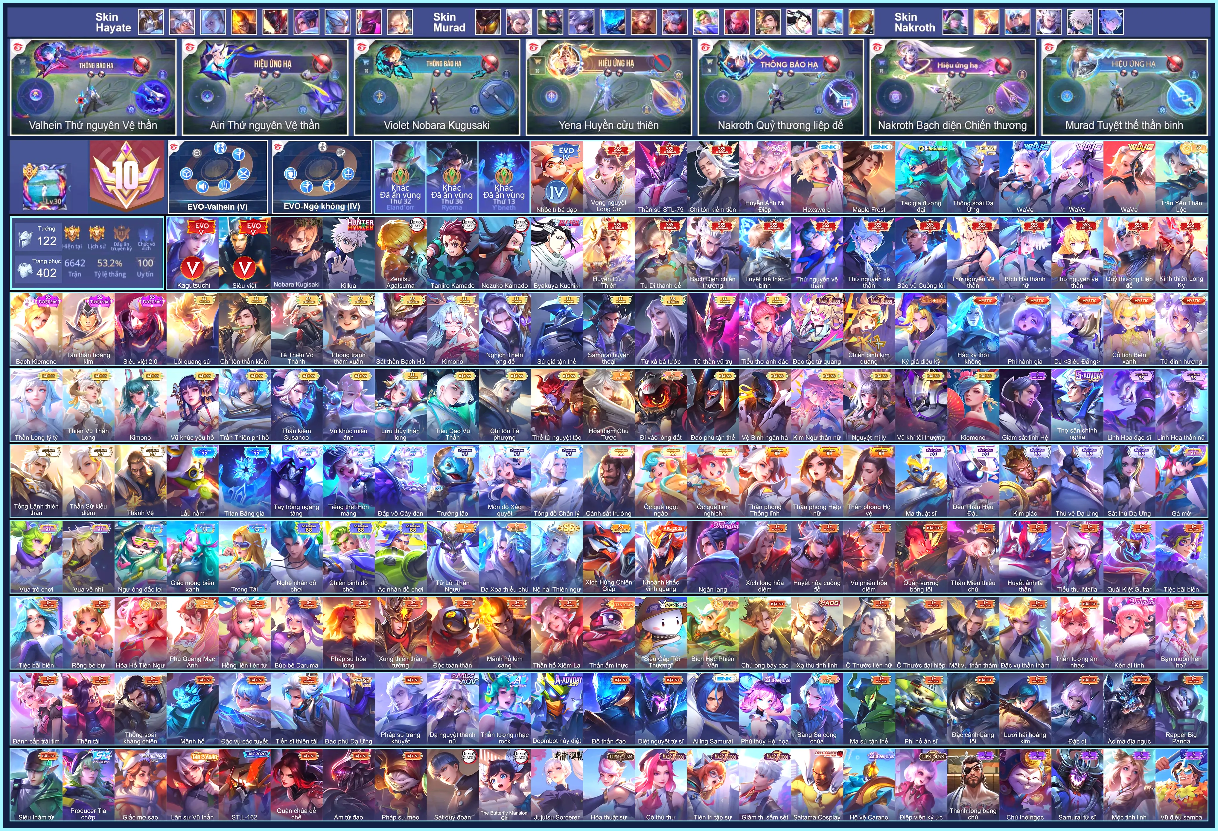 Acc #68967: (VIP 10) Ryoma Maple Frost, Nakroth Killua, Yan Tanjiro Kamado, Keera Nezuko Kamado, Charlotte Hexsword..., giá 25,500,000 đ