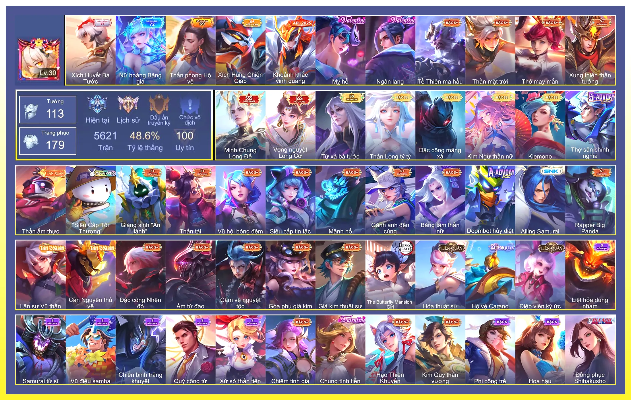 Loại acc | MUA ACC LIÊN QUÂN VIP: SKIN SSS, ANIME, CỤC VÀNG, MÁC THÁCH ĐẤU |