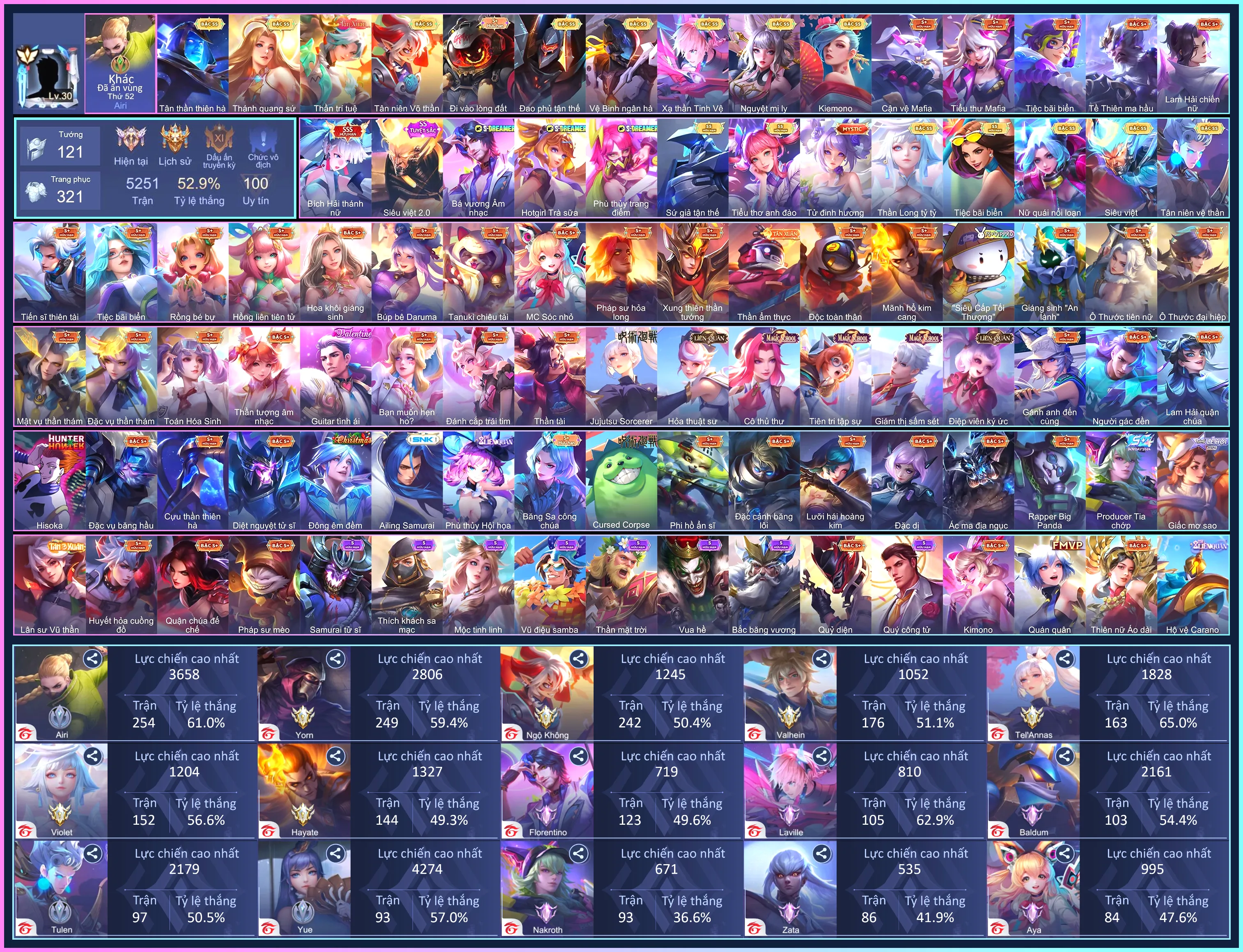 Loại acc | MUA ACC LIÊN QUÂN VIP: SKIN SSS, ANIME, CỤC VÀNG, MÁC THÁCH ĐẤU |