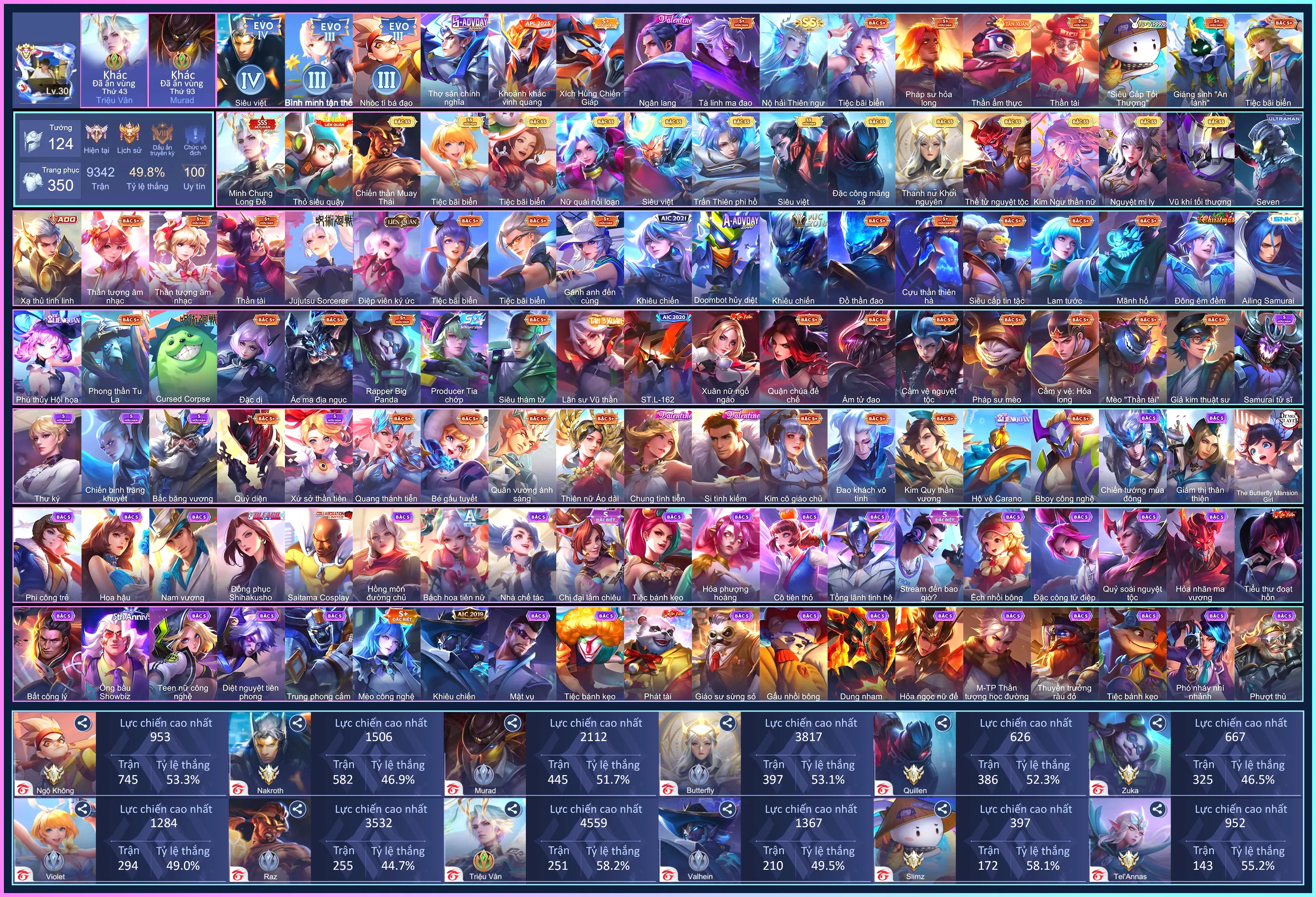 Acc #69265: Triệu Vân Minh Chung long đế, Raz Thái, Eslu Phi Hồ, Tell Khởi Nguyên, Butterfly Nữ Quái,.. dàn ss xịn, giá 1,800,000 đ