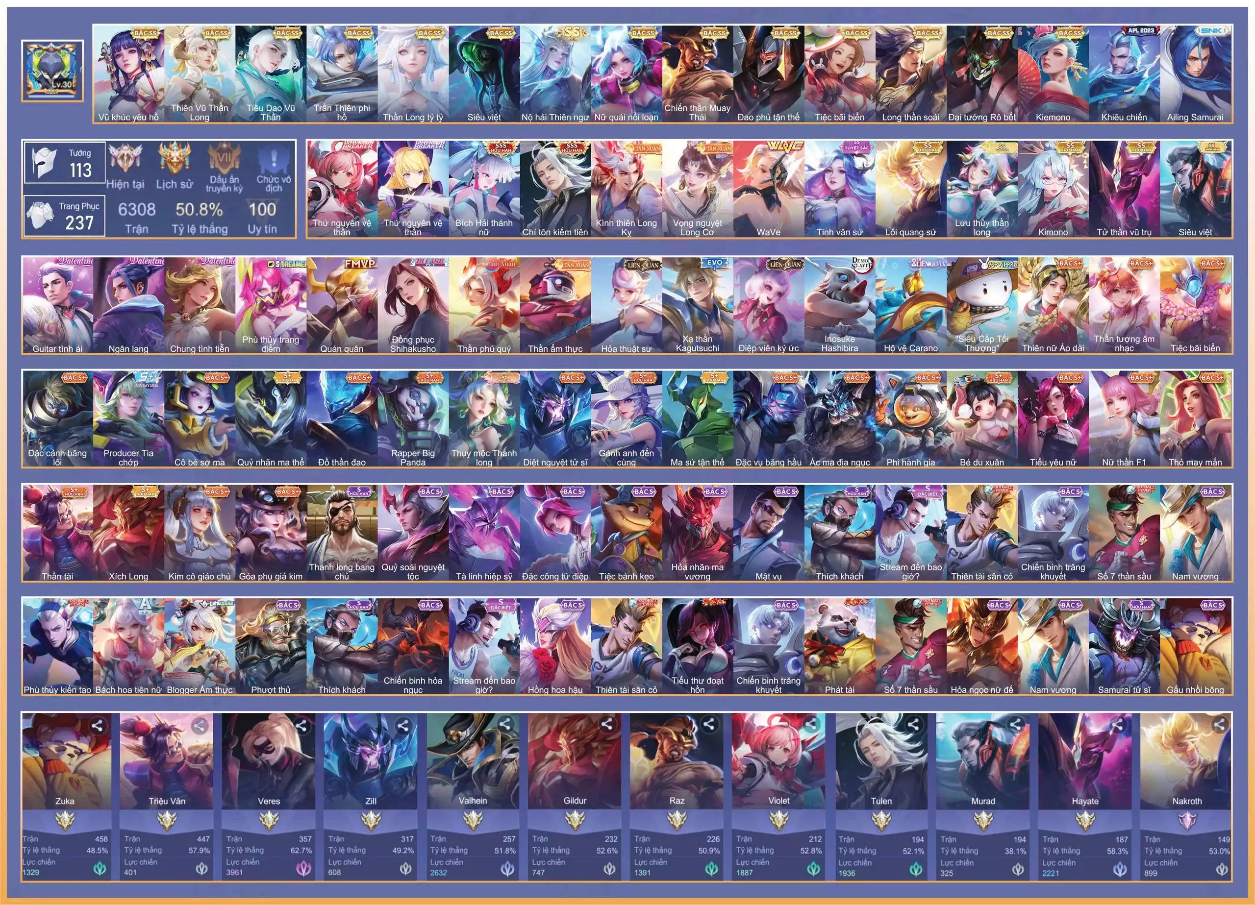 Loại acc | MUA ACC LIÊN QUÂN VIP: SKIN SSS, ANIME, CỤC VÀNG, MÁC THÁCH ĐẤU |