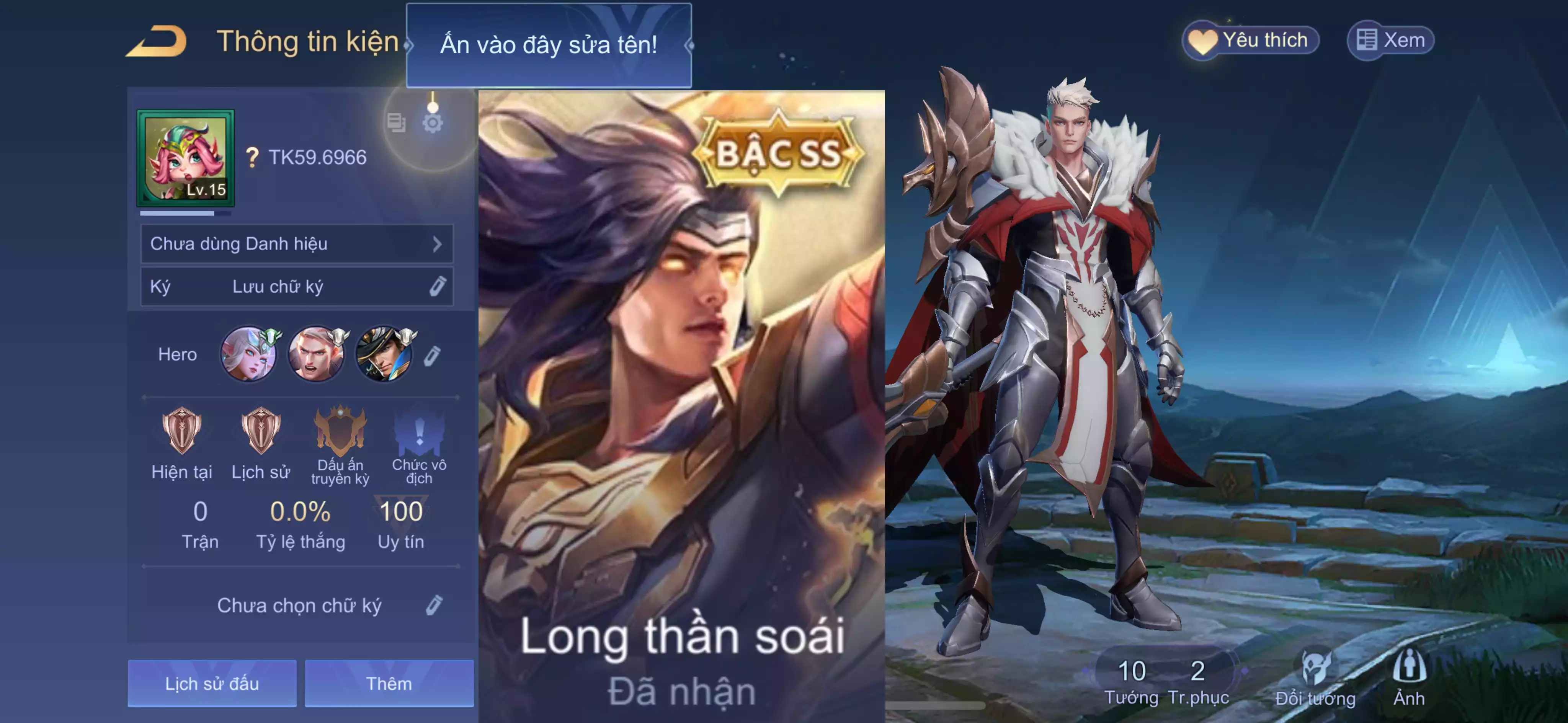 Acc #69437: Yorn Long Thần Soái,...Trắng all thông tin, giá 89,000 đ