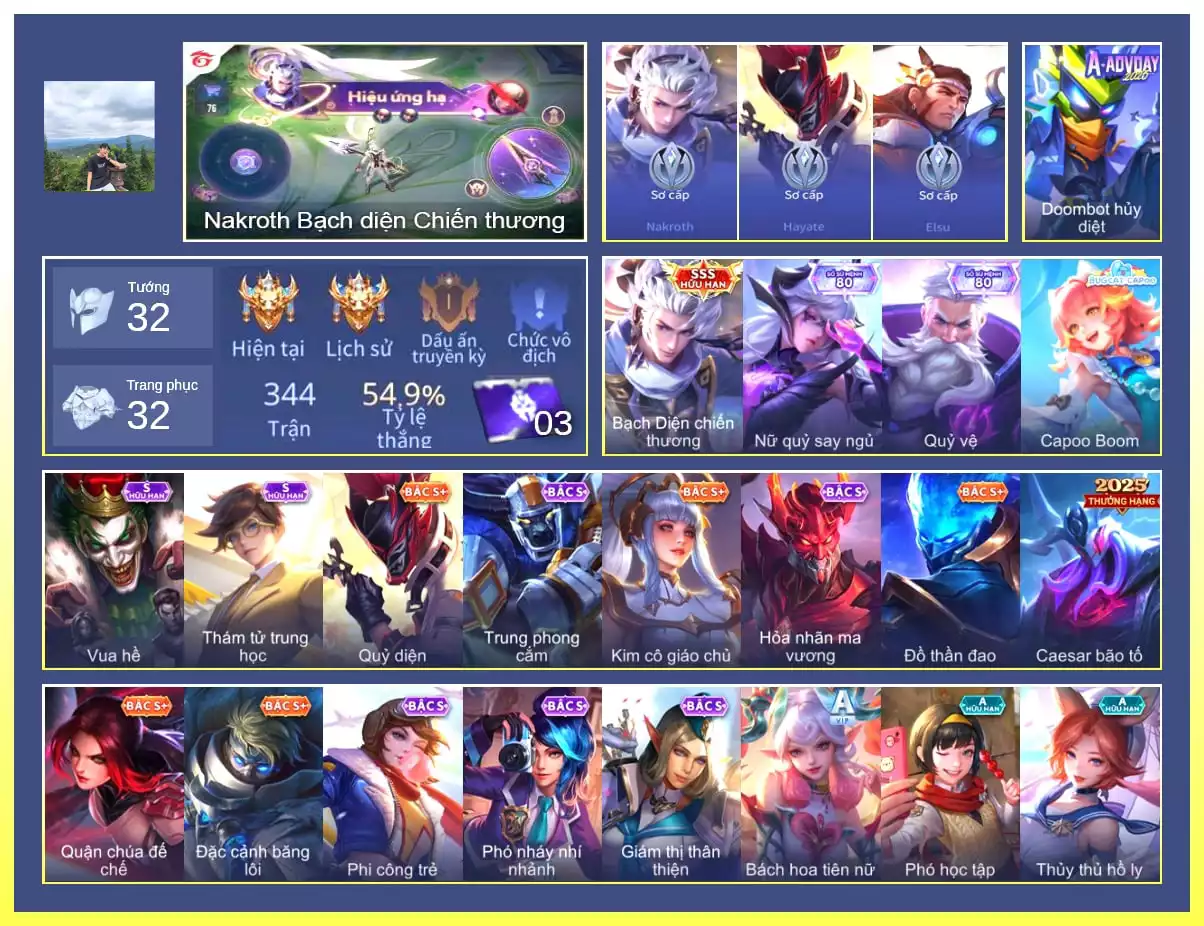 Loại acc | MUA ACC LIÊN QUÂN VIP: SKIN SSS, ANIME, CỤC VÀNG, MÁC THÁCH ĐẤU |