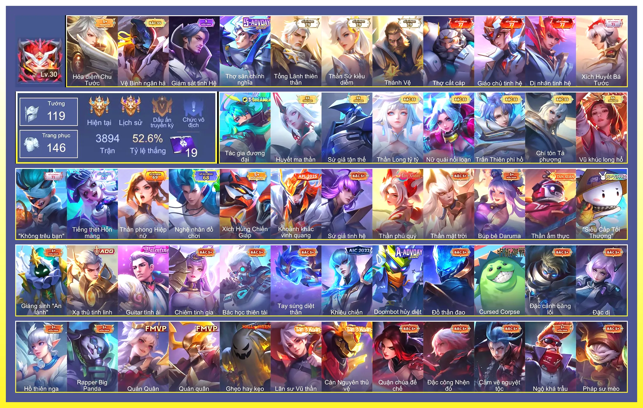 Loại acc | MUA ACC LIÊN QUÂN VIP: SKIN SSS, ANIME, CỤC VÀNG, MÁC THÁCH ĐẤU |