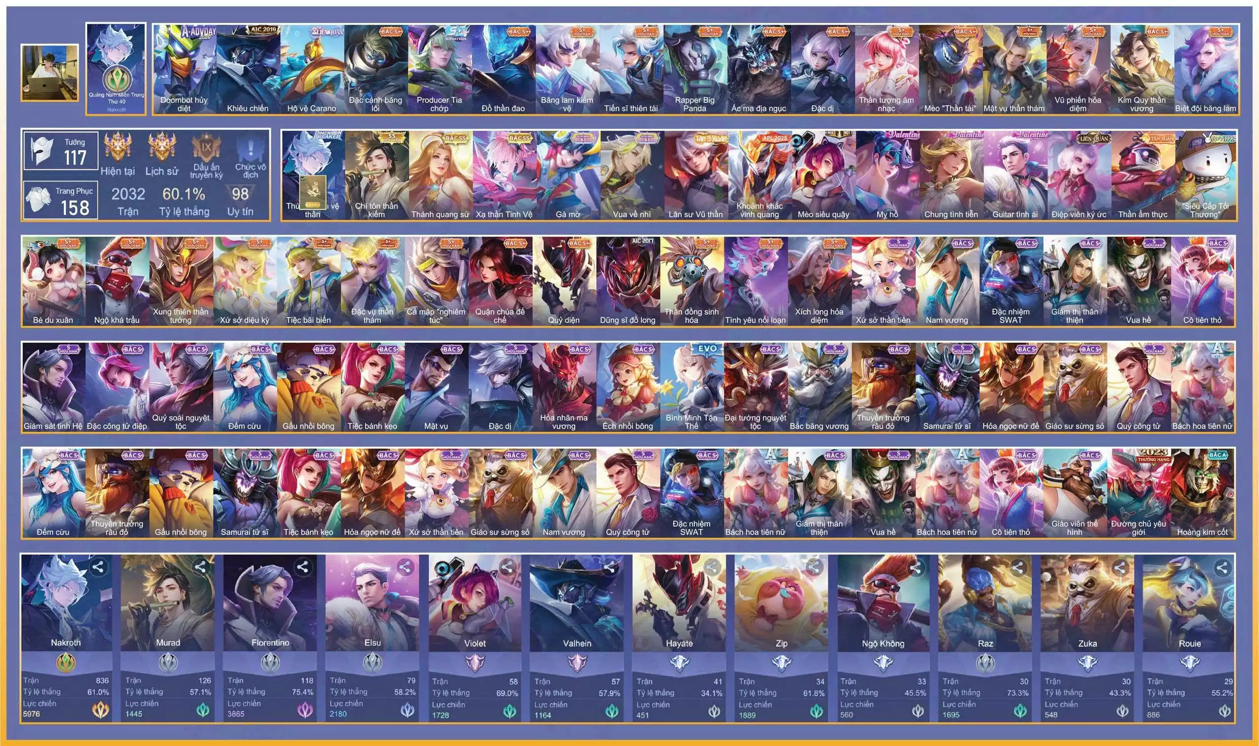 Loại acc | MUA ACC LIÊN QUÂN VIP: SKIN SSS, ANIME, CỤC VÀNG, MÁC THÁCH ĐẤU |