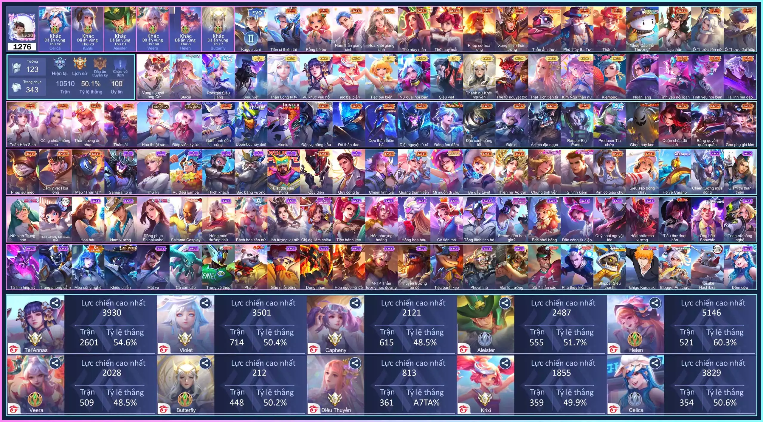 Acc #70116: Champ butter, Vio long cơ, Butter stacia v2, Vio tỷ tỷ, Butter siêu đẳng, Tel vũ khúc, Butter khơi nguyên, Butter tiên tử…, giá 2,500,000 đ