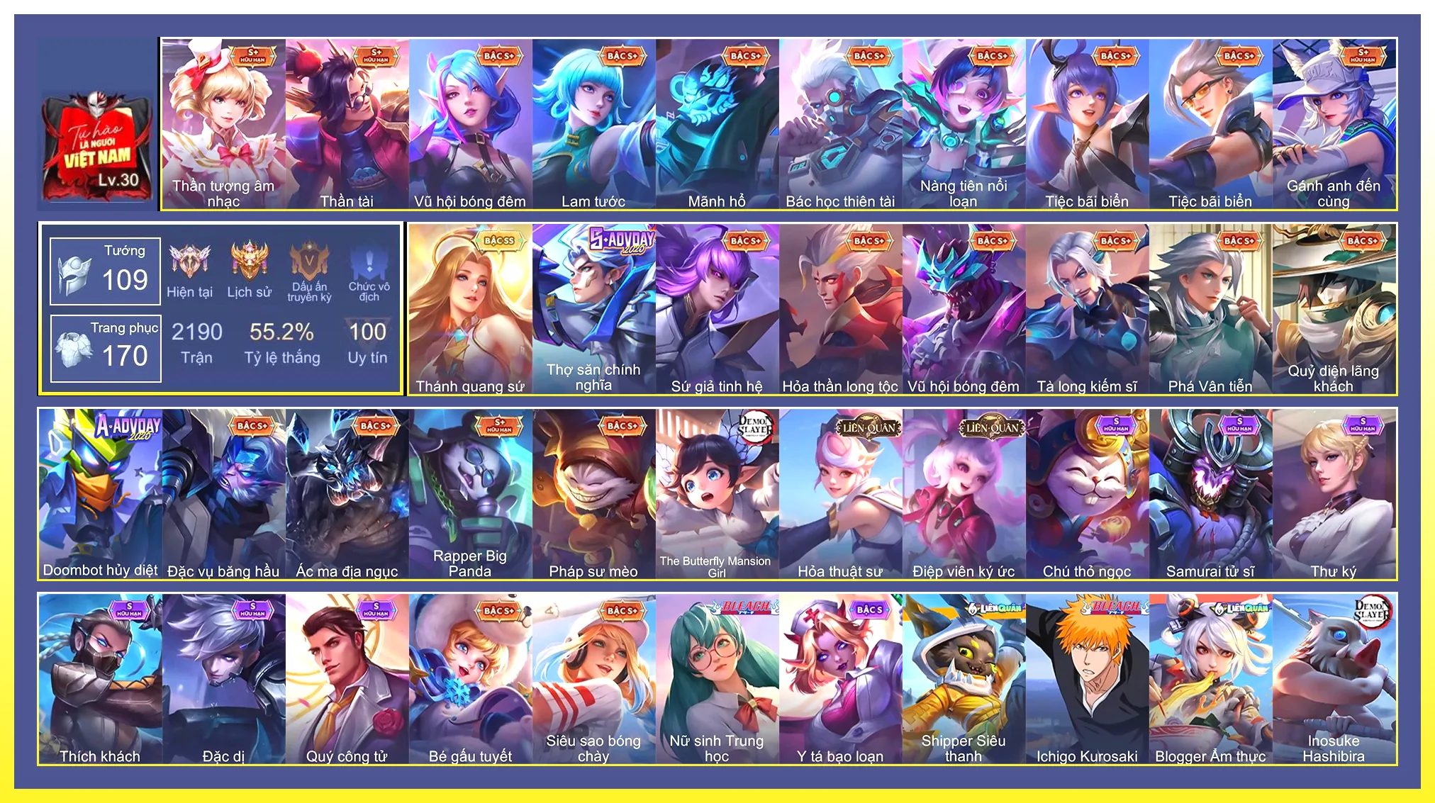 Bonnie S Quang Vinh|CÁC SKIN SS: Lauriel Thánh Quang Sứ|CÁC SKIN SSS: |CÁC SKIN ANIME VIP: |ANIME CÙI: Lindis Đồng Phục Shihakusho