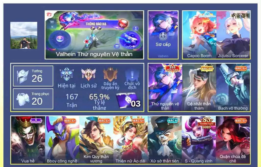 | Loại acc | MUA ACC LIÊN QUÂN VIP: SKIN SSS, ANIME, CỤC VÀNG, MÁC THÁCH ĐẤU |