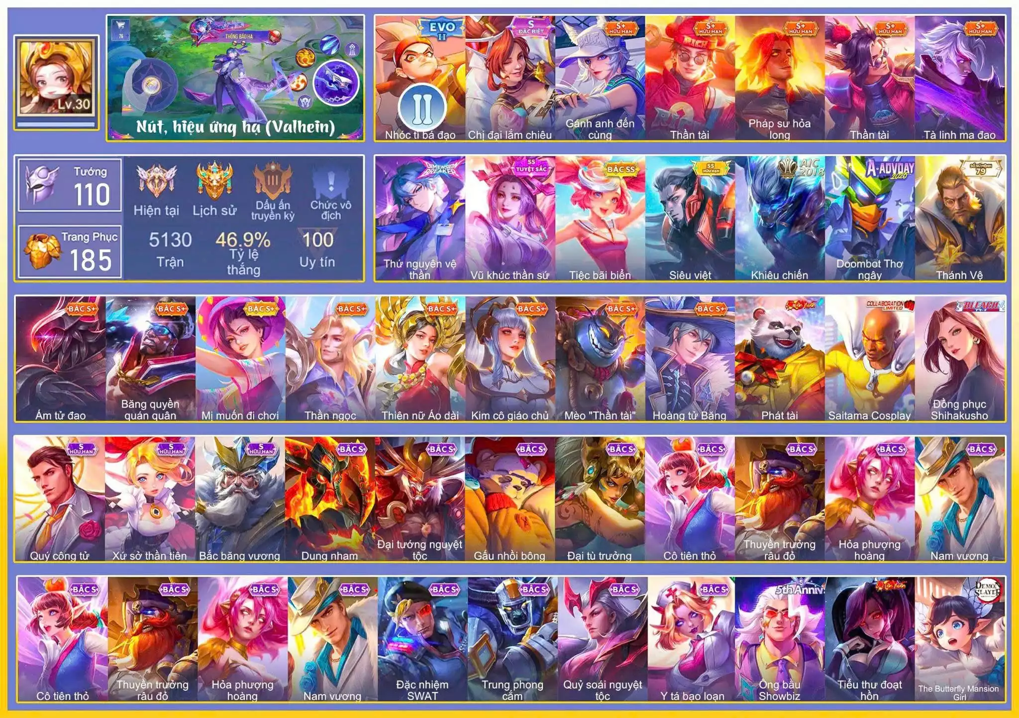 | Loại acc | MUA ACC LIÊN QUÂN VIP: SKIN SSS, ANIME, CỤC VÀNG, MÁC THÁCH ĐẤU |