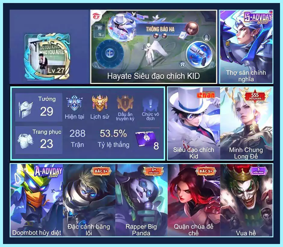 | Loại acc | MUA ACC LIÊN QUÂN VIP: SKIN SSS, ANIME, CỤC VÀNG, MÁC THÁCH ĐẤU |