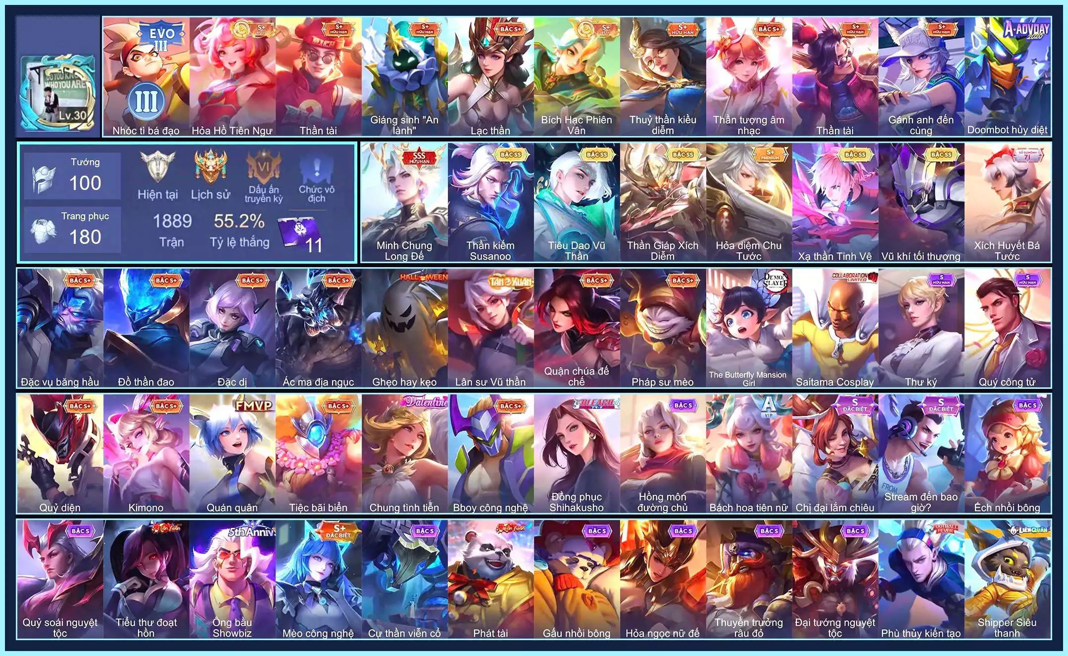 | Loại acc | MUA ACC LIÊN QUÂN VIP: SKIN SSS, ANIME, CỤC VÀNG, MÁC THÁCH ĐẤU |