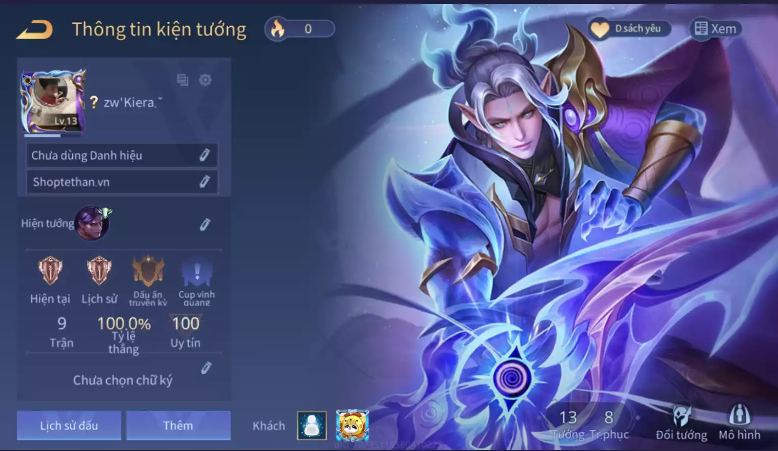 Acc #7688: Quillen long đế, sẵn tướng, trắng thông tin, ngọc 85, giá 500,000 đ