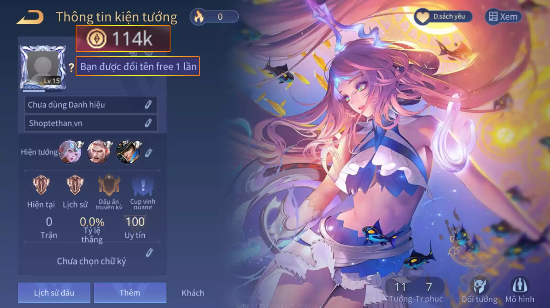 Butter kim ngư, sẵn tướng, dư 115k vàng, trắng thông tin